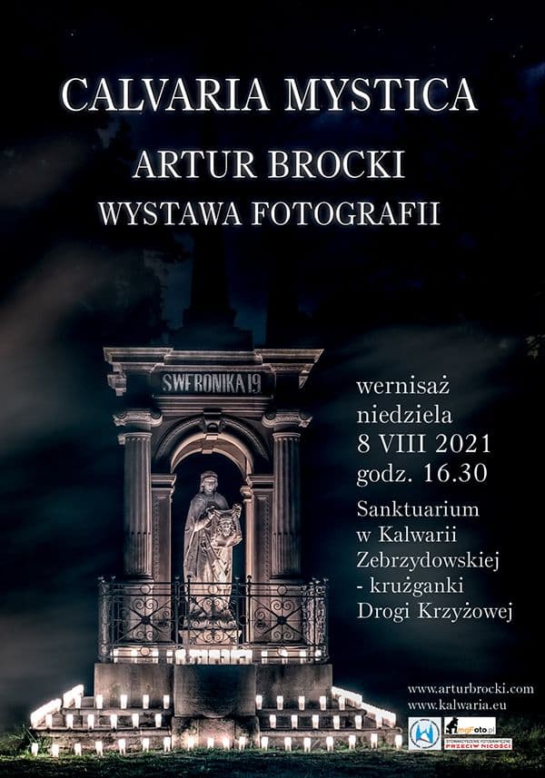 Calvaria. Miejsce czaszki. Arena wydarzeń, które na zawsze zmieniły dzieje ludzkości, zapoczątkowały nową erę. Poprzez calvarię historia Jezusa z Nazaretu stała się historią milionów chrześcijan na całym świecie. Wystawa „Calvaria Mystica” jest kompozycją nocnych ujęć kaplic kalwaryjskiej Drogi Krzyżowej, widzianych z zupełnie nowej perspektywy. Unikatowy klimat fotografiom Artura Brockiego nadaje ciepłe światło świec, oświetlających wiekowe kaplice, których fasady są tak dobrze znane kalwaryjskim pątnikom. Noc sprawia, że przestrzeń pustoszeje, znikają dalsze plany, światło rozprasza mrok i skupia wzrok widza na istocie prezentowanych fotografii – mistyce Kalwarii. Wystawa, efekt nietuzinkowego projektu fotograficznego, potwierdza, że na każde, nawet najlepiej znane miejsce można spojrzeć jeszcze inaczej. Wernisaż wystawy 8 sierpnia o godz 16:30 w Krużgankach Drogi Krzyżowej w Sanktuarium w Kalwarii Zebrzydowskiej.