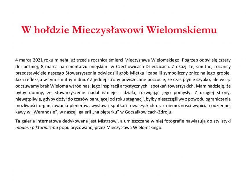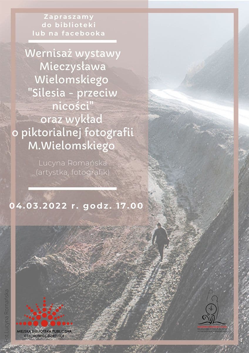 4 marca o godz. 17.00 serdecznie zapraszamy do Miejskiej Biblioteki Publicznej w Czechowicach Dziedzicach ul Paderewskiego 3 na wernisaż wystawy prac Mieczysława Wielomskiego pt. „Silesia – przeciw nicości”. Podczas wernisażu Lucyna Romańska wygłosi wykład o piktorialnej fotografii. Wydarzenie to będzie uroczystym otwarciem pierwszego, po prawie dwuletniej przerwie, semestru zajęć w ramach „Akademii Pięknego Czasu”.